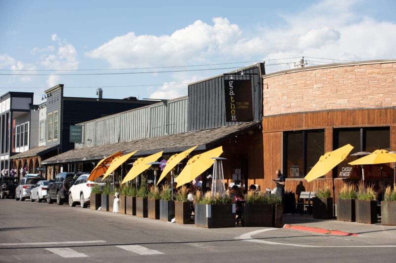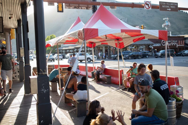 The maxim proved true and plenty of visitors showed up from mid-May through October. When tourists arrived at Jackson’s Town Square, they were greeted by numerous outdoor eateries where they could soak in the summer sun, take deep breaths of fresh mountain air, and worry (at least a little bit) less about the COVID-19 pandemic. Fifteen restaurants and galleries hosted parklets for as much as 150 days, all closing their outdoor shops by October 31 or sooner. A true collaboration, these seemingly simple outside spaces met Fire, Health, Police, Planning, and Public Works Department standards and those serving alcohol complied with state liquor laws as well.
